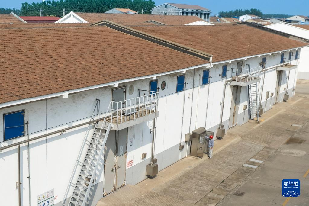 6月1日,位于夏邑縣會(huì )亭鎮的河南世通谷物有限公司夏邑直屬庫員工在測試倉儲自動(dòng)控溫設備(無(wú)人機照片)。