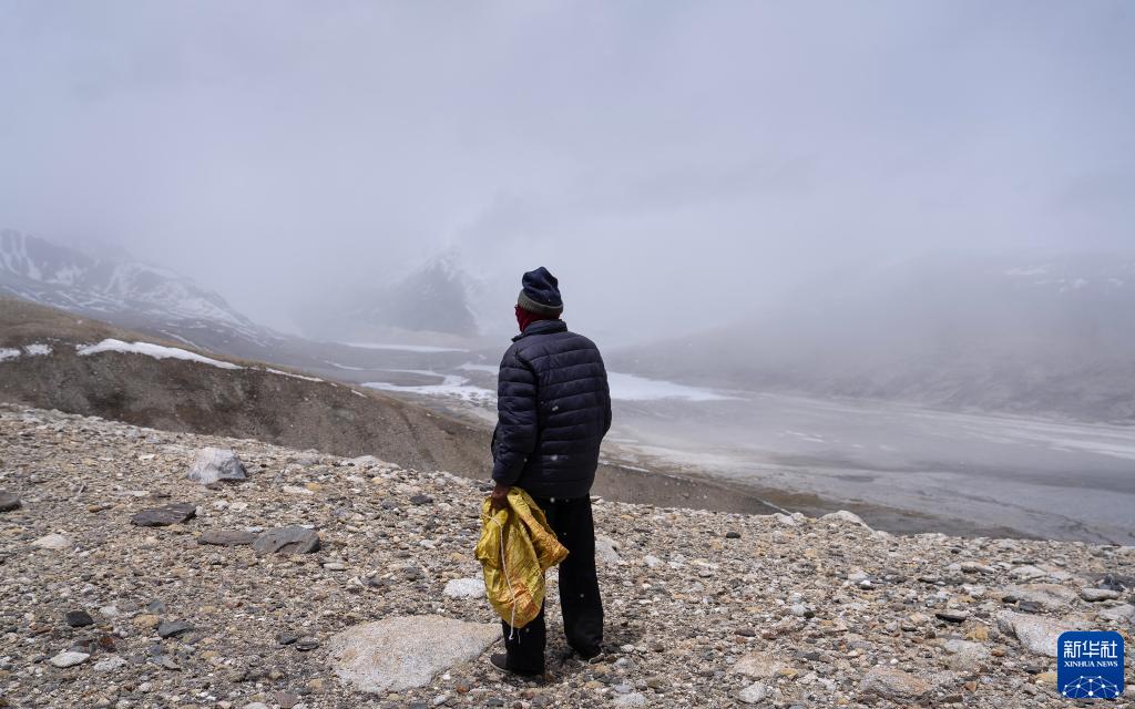 5月31日,乃乃老人凝望著(zhù)遠處的杰瑪央宗冰川。新華社記者 費茂華 攝