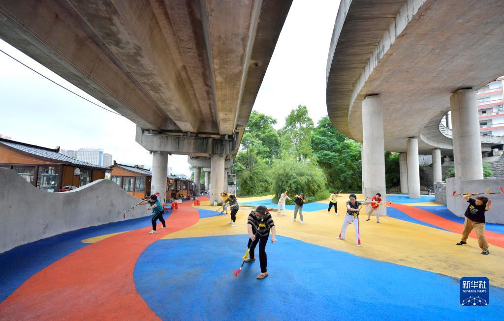 6月1日,居民在宣恩縣一處立交橋下建設的健身場(chǎng)地休閑。