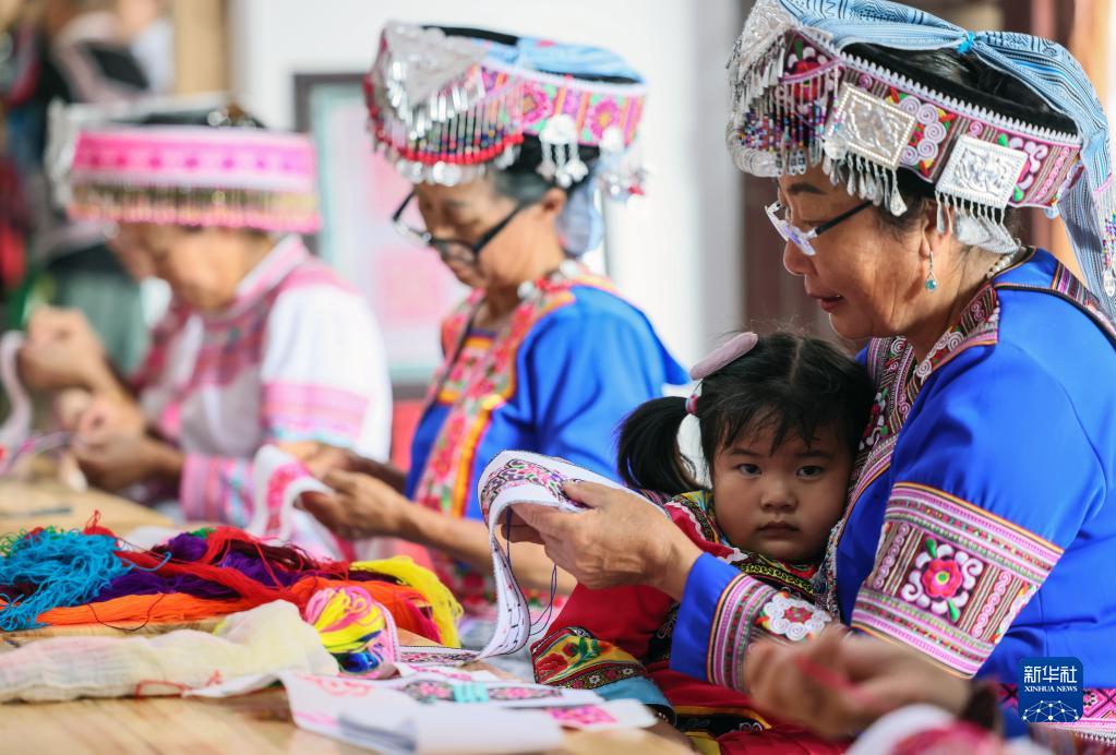 近年來(lái),云南省屏邊苗族自治縣將苗繡產(chǎn)業(yè)與鄉村振興緊密結合,通過(guò)設立“繡娘扶貧車(chē)間”、開(kāi)展刺繡技能培訓、扶持龍頭刺繡企業(yè)等措施,吸納婦女就業(yè),讓越來(lái)越多的群眾實(shí)現在家門(mén)口創(chuàng )收。