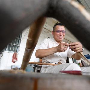 陸云崗家住廣西賓陽(yáng)縣賓州鎮陸村,是廣西非物質(zhì)文化遺產(chǎn)賓陽(yáng)油紙傘制作技藝傳承人。油紙傘制作技藝在賓陽(yáng)縣傳承已超過(guò)300年,陸云崗家幾代都是制傘手藝人。從砍竹子到成品,一把油紙傘前后要經(jīng)過(guò)120多道工序,從頭到尾要3天才能完成。陸云崗說(shuō),就是在這樣精細的制作打磨中,每一件產(chǎn)品擁有了手藝人心手相傳、代代不絕的溫度。