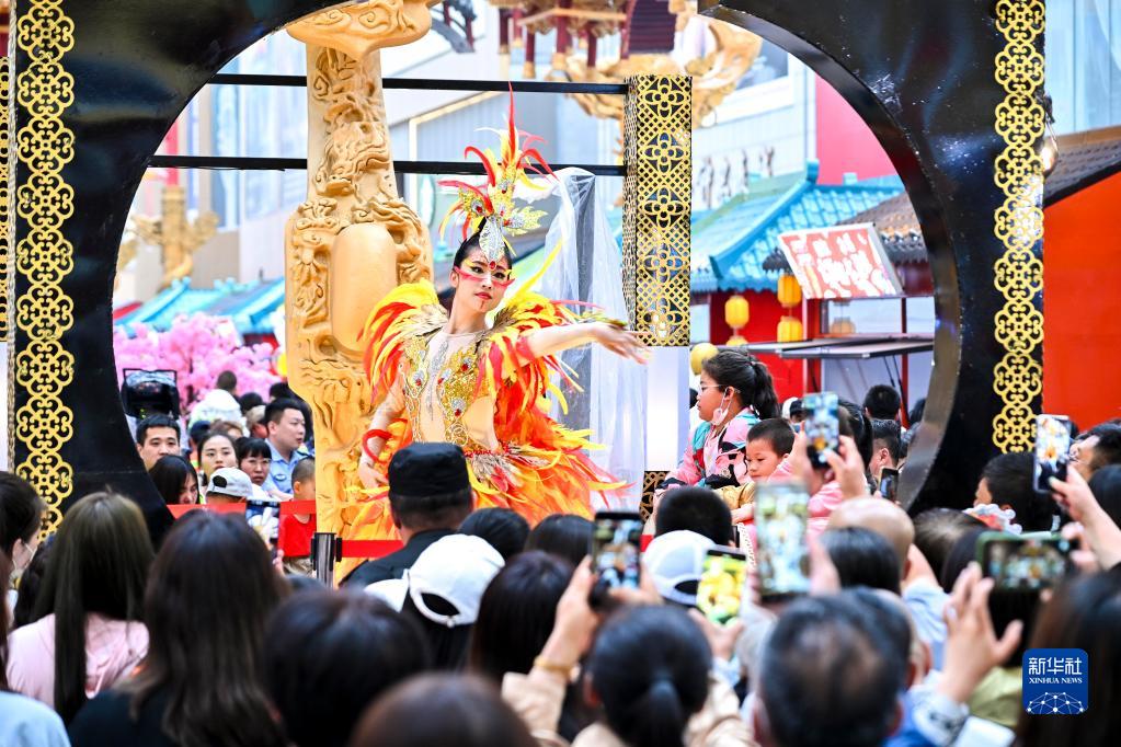 6月1日,表演者在四平市仁興里沉浸式文旅街區內進(jìn)行舞蹈表演。