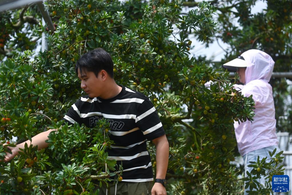 6月2日,游客在板橋鎮蔥坑村白楊梅基地的大棚里采摘白楊梅。