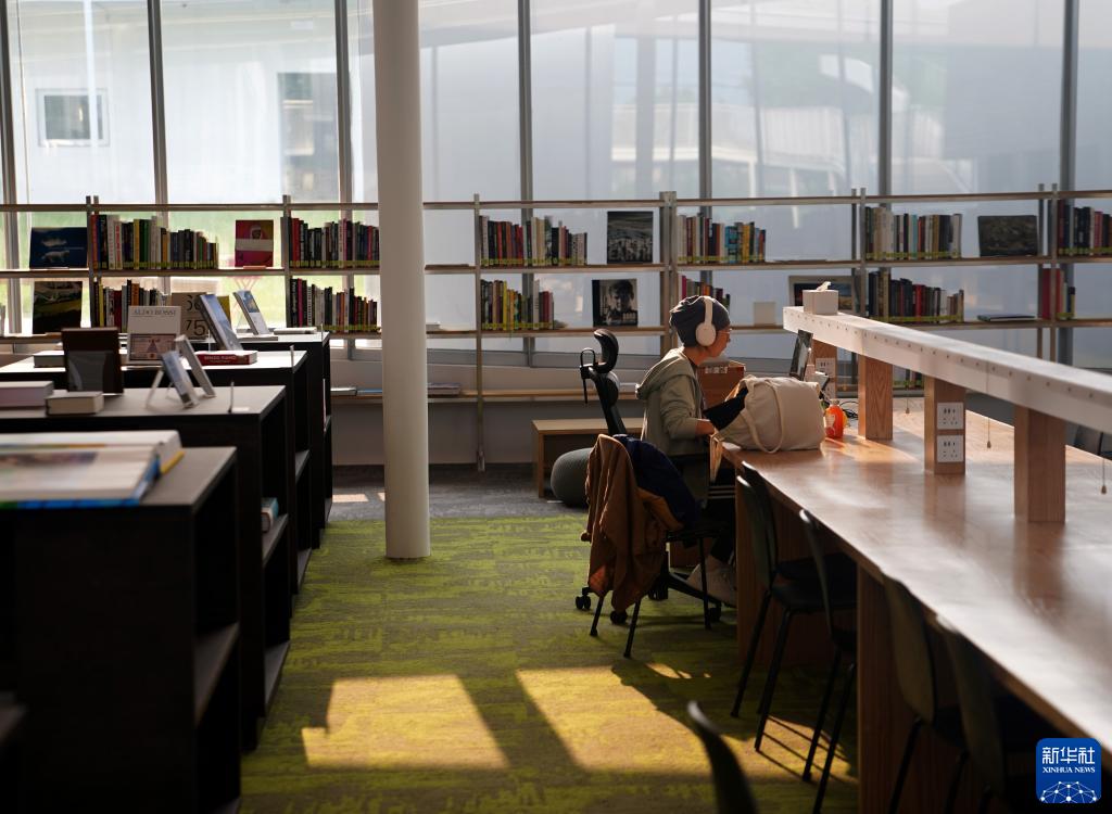 6月1日,一名“數字游民”在位于溪龍鄉的安吉縣創(chuàng )意設計中心圖書(shū)館內。