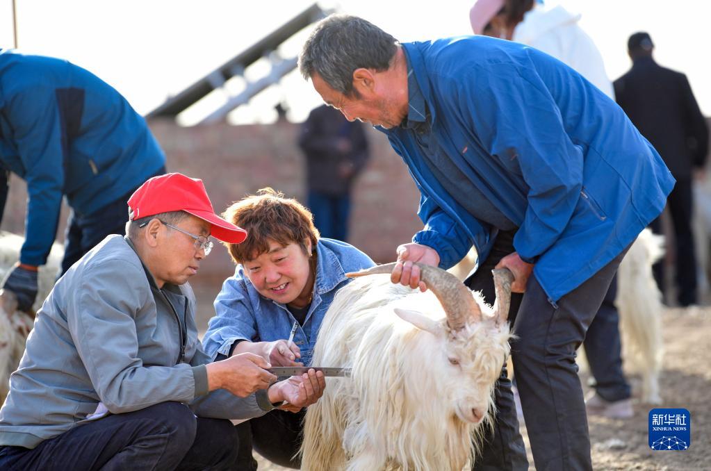 6月2日,鄂爾多斯市鄂托克前旗牧民測量阿爾巴斯絨山羊羊絨長(cháng)度。