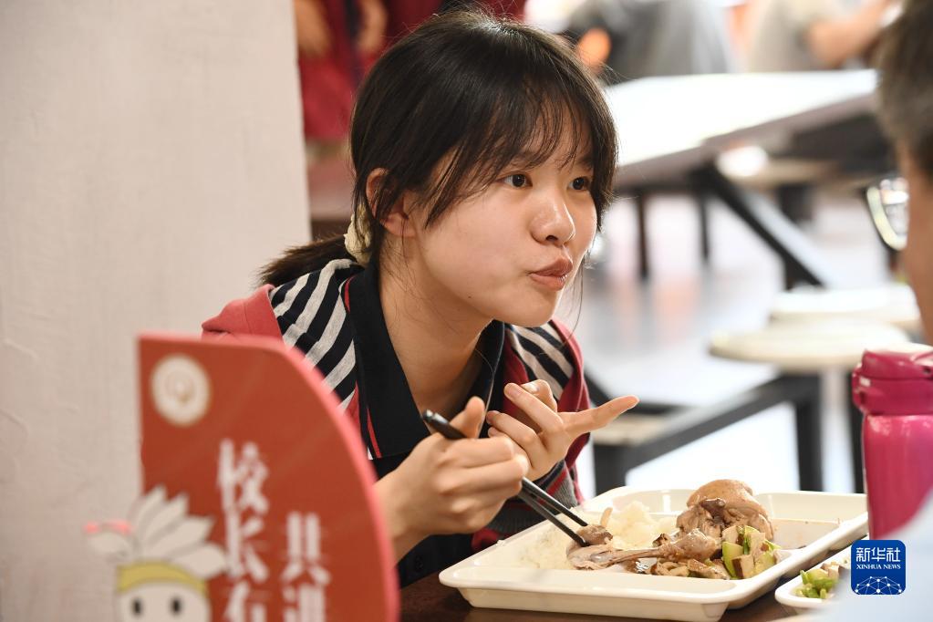 6月2日,學(xué)生在南京市第九中學(xué)食堂用餐時(shí)交流。
