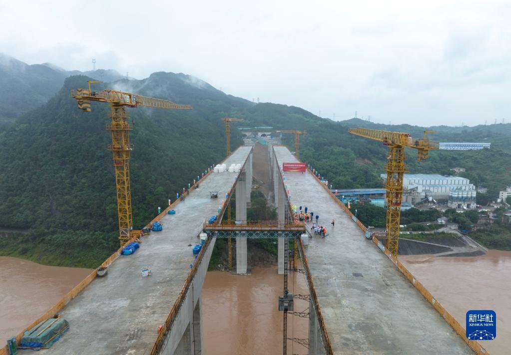 當日,重慶渝武高速公路復線(xiàn)觀(guān)音峽嘉陵江特大橋實(shí)現左幅中跨合龍,標志著(zhù)觀(guān)音峽嘉陵江特大橋主橋主體結構全部完成。觀(guān)音峽嘉陵江特大橋位于重慶市北碚區,大橋主跨235米,是渝武高速公路復線(xiàn)控制性工程。