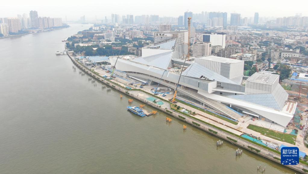 白鵝潭大灣區藝術(shù)中心宛如一艘“文化巨輪”揚帆珠江(6月2日攝,無(wú)人機照片)。