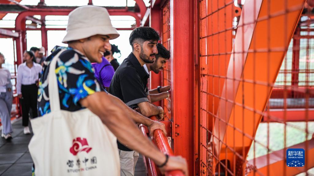 6月3日,留學(xué)生在壩陵河大橋內部實(shí)地參觀(guān)。