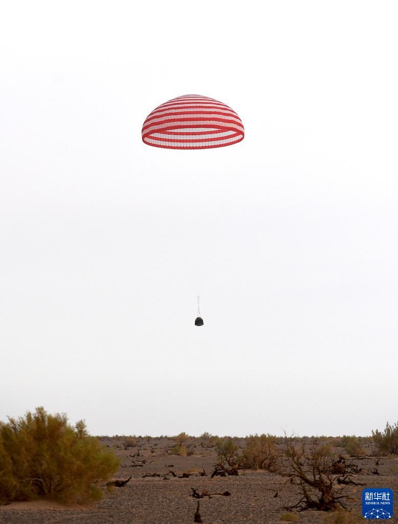 6月4日,神舟十五號載人飛船返回艙在東風(fēng)著(zhù)陸場(chǎng)成功著(zhù)陸。新華社記者 任軍川 攝