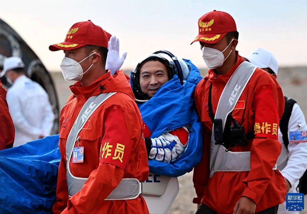 6月4日,神舟十五號載人飛船返回艙在東風(fēng)著(zhù)陸場(chǎng)成功著(zhù)陸,神舟十五號載人飛行任務(wù)取得圓滿(mǎn)成功。這是航天員費俊龍安全順利出艙。新華社記者 賀書(shū)琛 攝