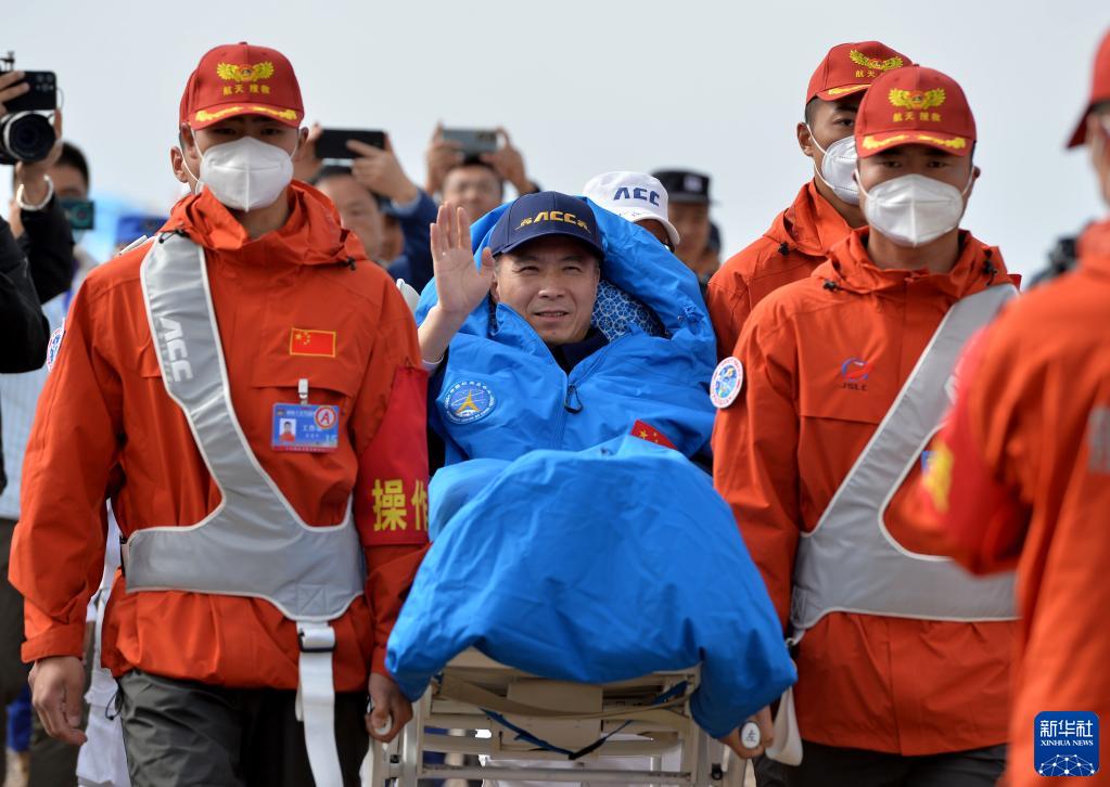 6月4日,神舟十五號載人飛船返回艙在東風(fēng)著(zhù)陸場(chǎng)成功著(zhù)陸,神舟十五號載人飛行任務(wù)取得圓滿(mǎn)成功。這是航天員費俊龍揮手致意。新華社記者 任軍川 攝