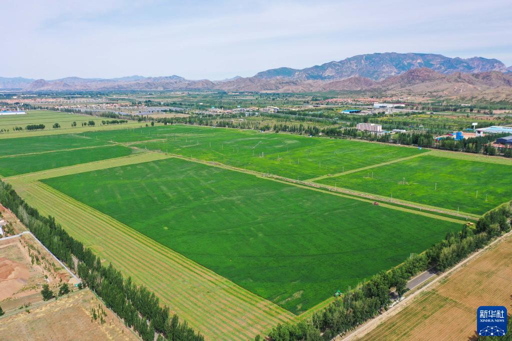 這是6月4日拍攝的土默特左旗國家現代農業(yè)示范區內的苜蓿種植基地(無(wú)人機照片)。