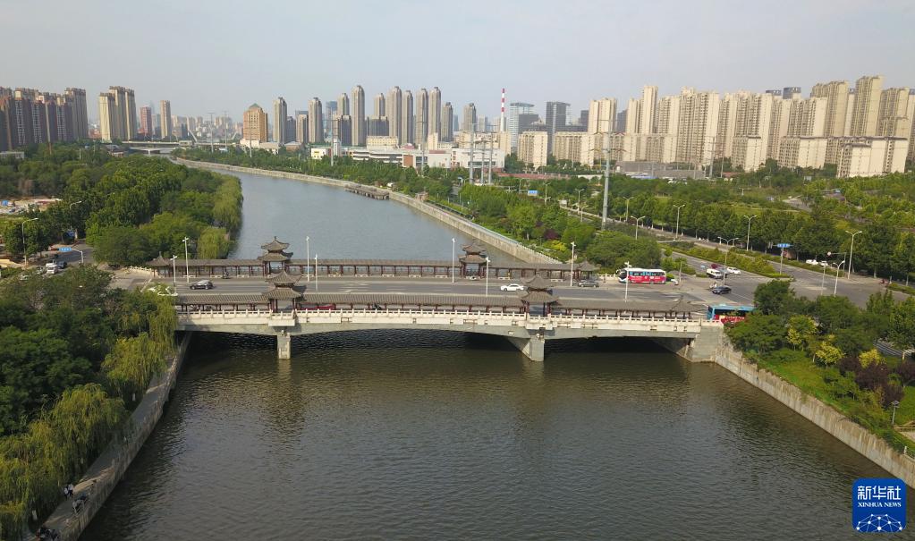 6月4日在山東省濟南市拍攝的小清河濟南段(無(wú)人機照片)。
