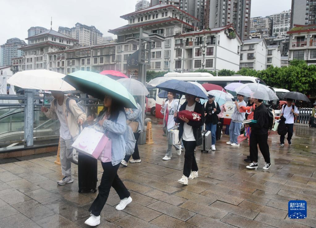 6月5日,重慶市巫山縣大昌中學(xué)赴考高三學(xué)生乘坐的中巴車(chē)到達駐地酒店,同學(xué)們有序下車(chē)。