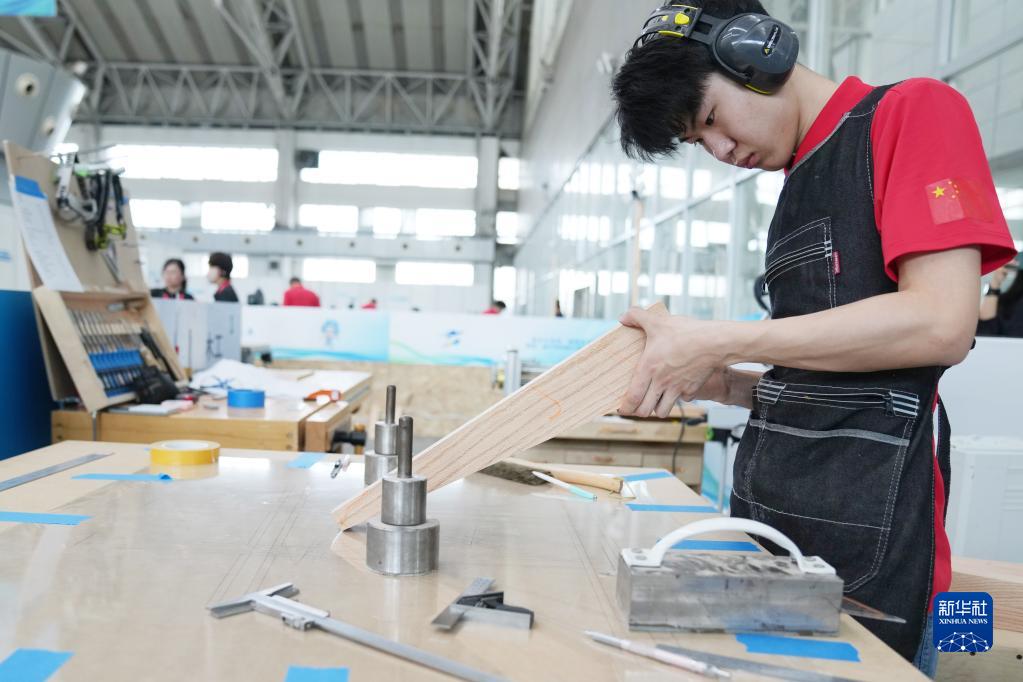 6月5日,選手在參加木工比賽。