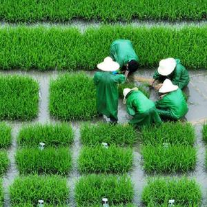 6月5日,農民在江蘇里下河地區農科所(揚州市農科院)的試驗田里勞作(無(wú)人機照片)。