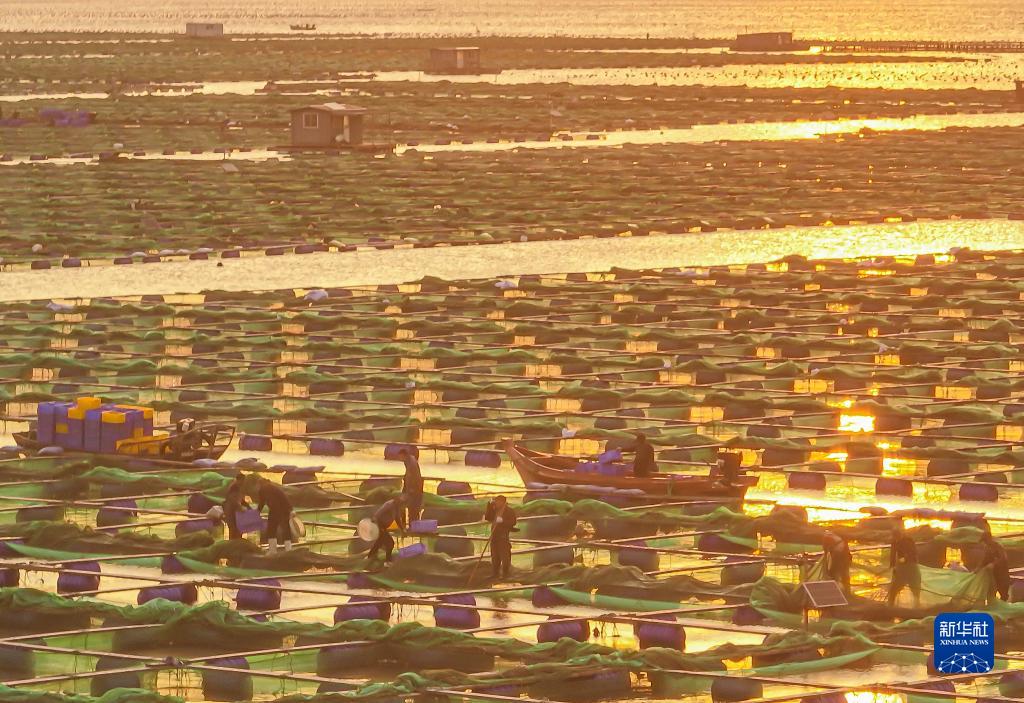 山東榮成:海洋牧場(chǎng)朝霞如畫(huà)