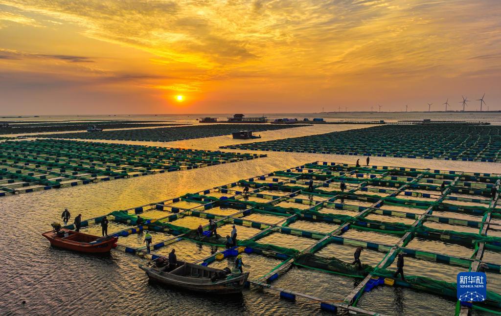 山東榮成:海洋牧場(chǎng)朝霞如畫(huà)