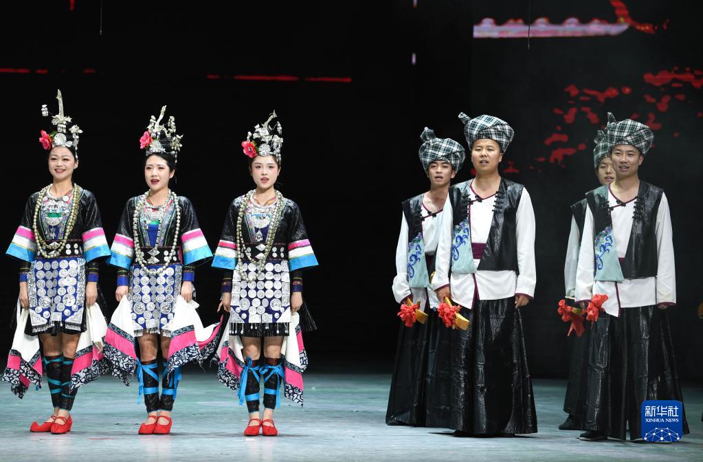 6月5日,演員在貴陽(yáng)大劇院的《多彩貴州風(fēng)》演出中表演節目《洪洲琵琶歌》。