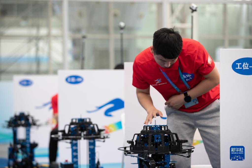 6月6日,選手在進(jìn)行移動(dòng)機器人項目比賽。
