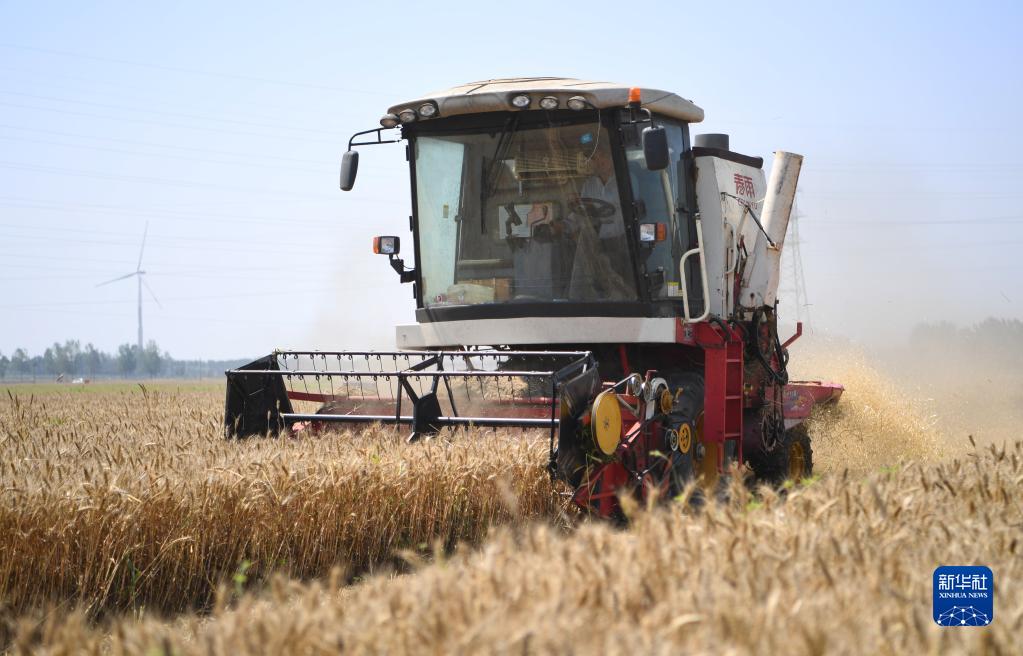 6月6日,在河南省安陽(yáng)市滑縣萬(wàn)古鎮,收割機在搶收種子田的小麥。