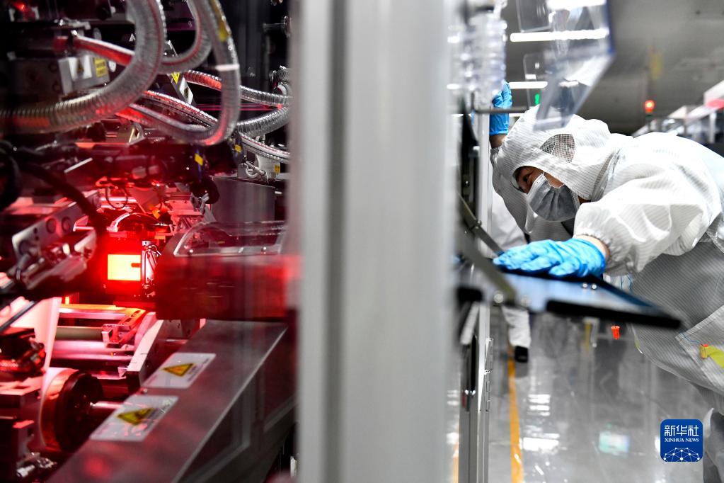 6月6日,在山東吉利欣旺達動(dòng)力電池有限公司,工作人員在鋰電池生產(chǎn)線(xiàn)值守。