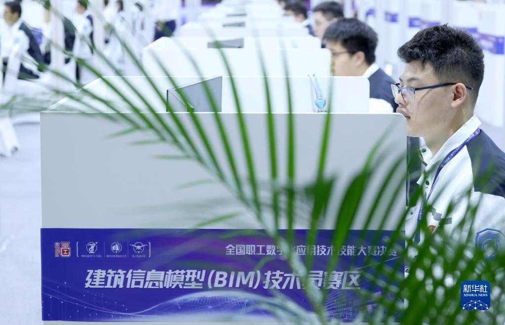 6月7日,參賽選手在建筑信息模型(BIM)技術(shù)員項目的比賽中。