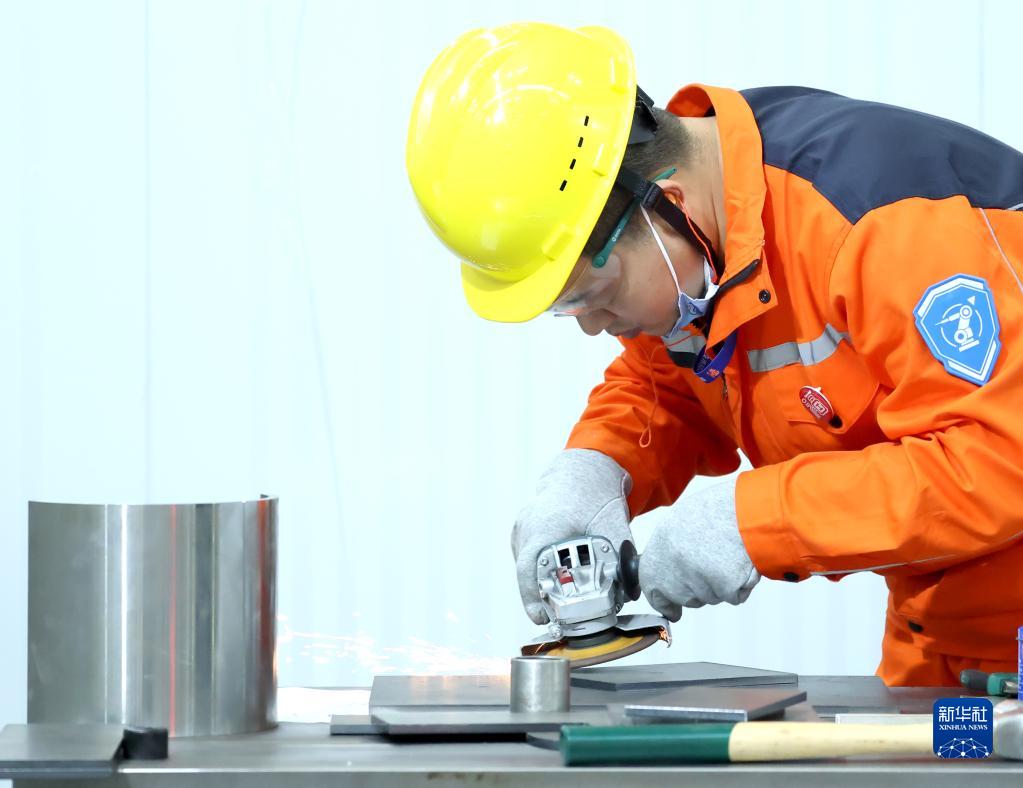 6月7日,參賽選手在焊接設備操作工—機器人項目的比賽中。