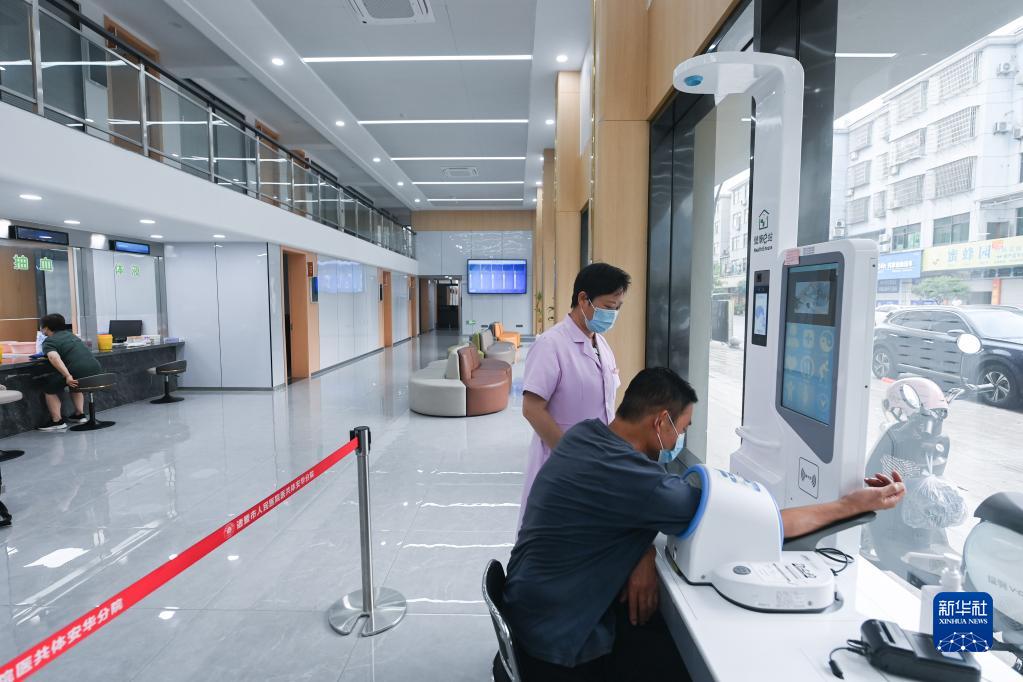 6月7日,在諸暨市安華鎮衛生院剛改建完成的健康服務(wù)中心內,居民在進(jìn)行體檢。