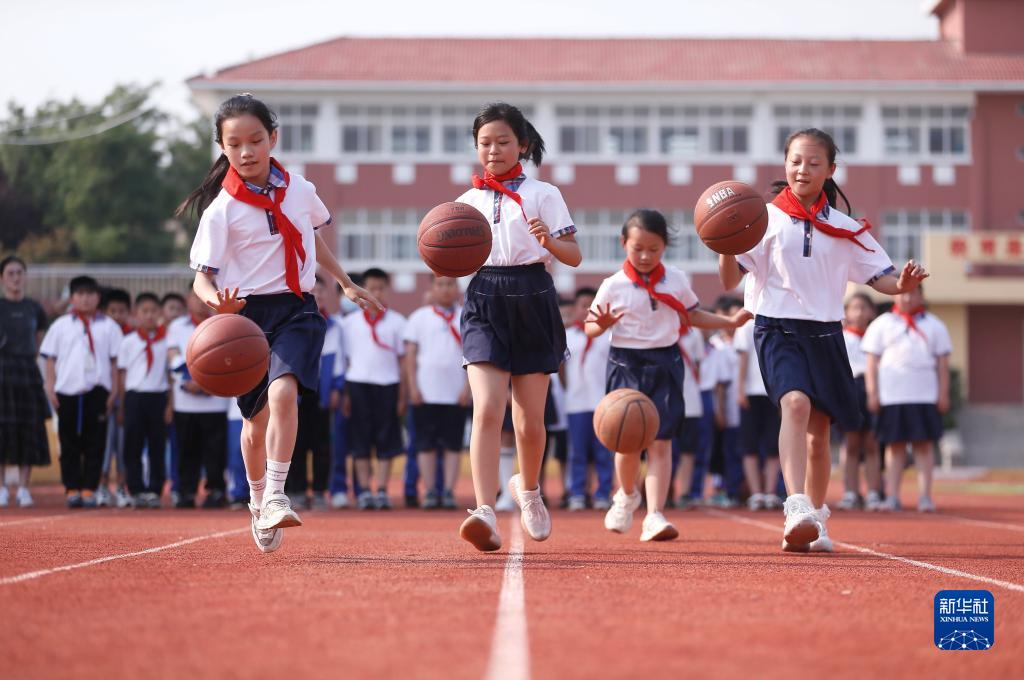 6月7日,山東省青島市即墨區鰲山衛方正小學(xué)的學(xué)生在進(jìn)行“歡樂(lè )拍球”比賽。