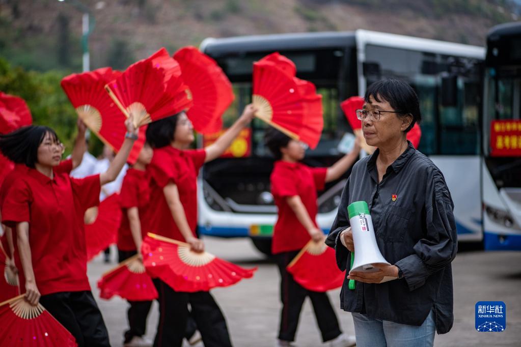 6月7日,張桂梅帶著(zhù)低年級學(xué)生給準備出發(fā)參加高考的同學(xué)們加油鼓勁。