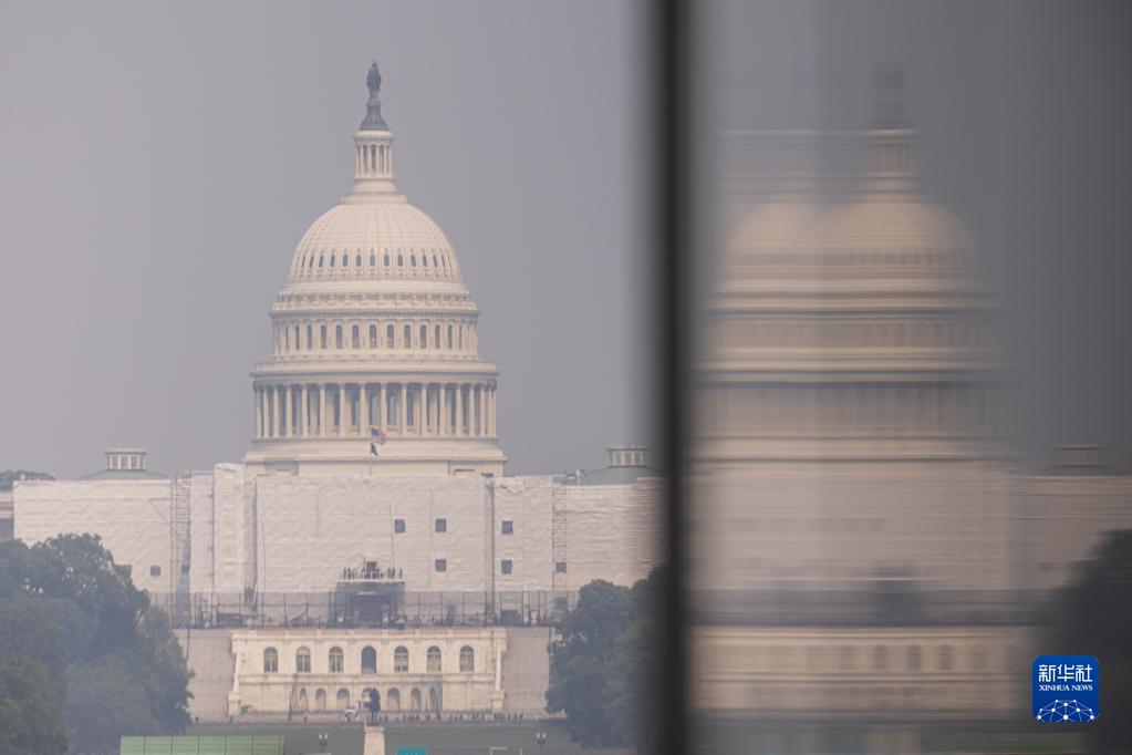 這是6月7日在美國首都華盛頓拍攝的煙塵籠罩的國會(huì )大廈。
