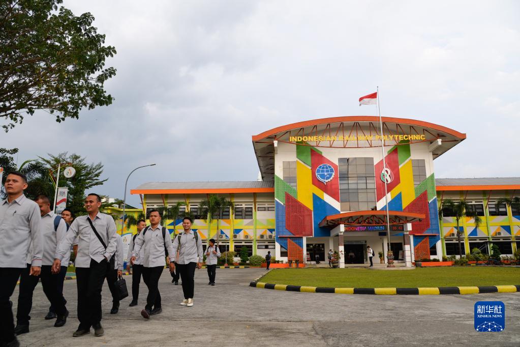 6月7日,在位于印度尼西亞茉莉芬市的印尼鐵路理工學(xué)院,雅萬(wàn)高鐵動(dòng)車(chē)組司機培訓班學(xué)員行走在校園中。