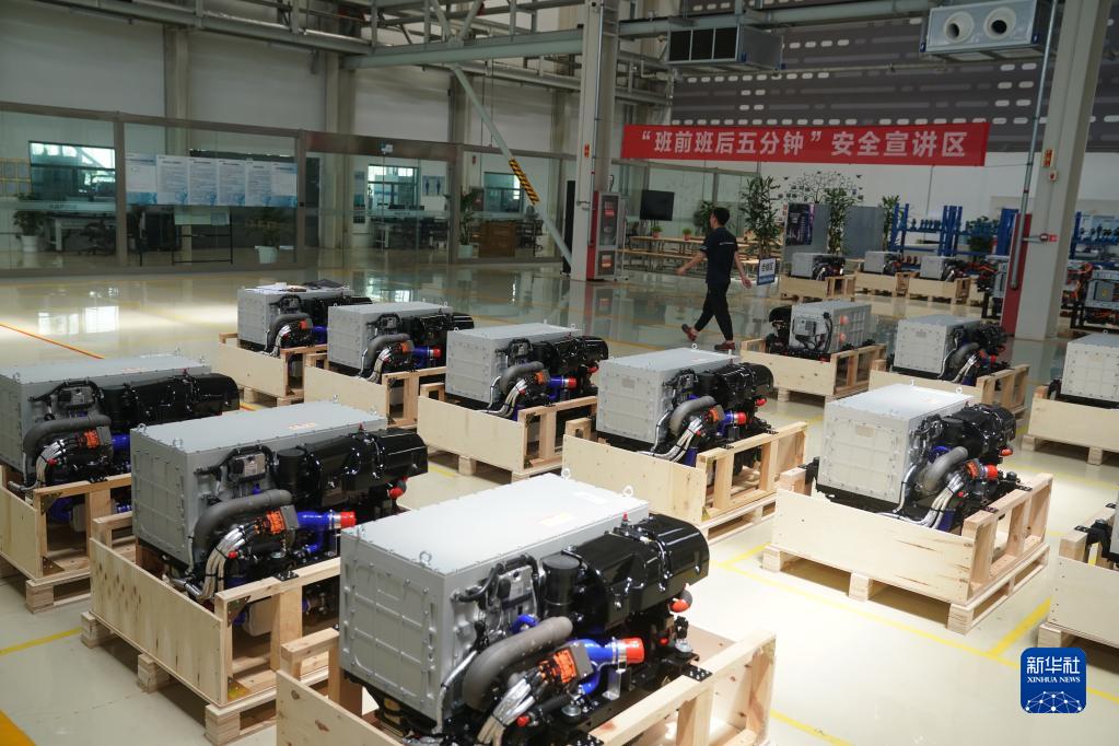 江蘇重塑能源科技有限公司車(chē)間內待檢測的氫燃料電池系統(6月7日攝)。