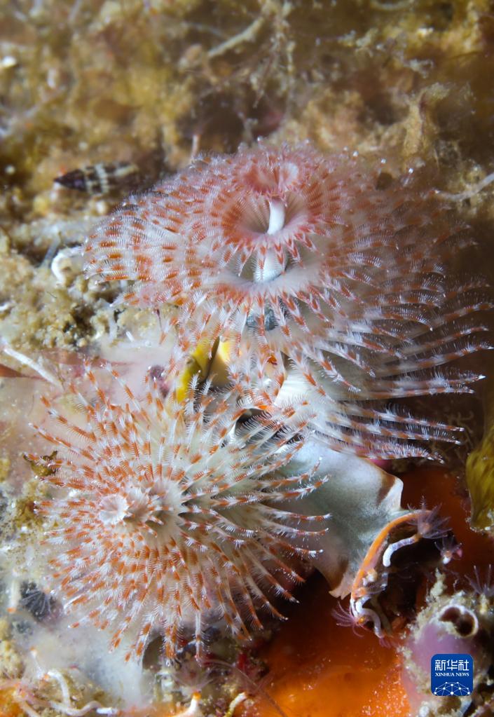 這是在分界洲島附近海域拍攝的圣誕樹(shù)管蟲(chóng)(5月26日攝)。