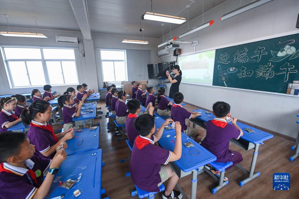 6月8日,學(xué)生們在傳統習俗課上學(xué)習制作香囊。