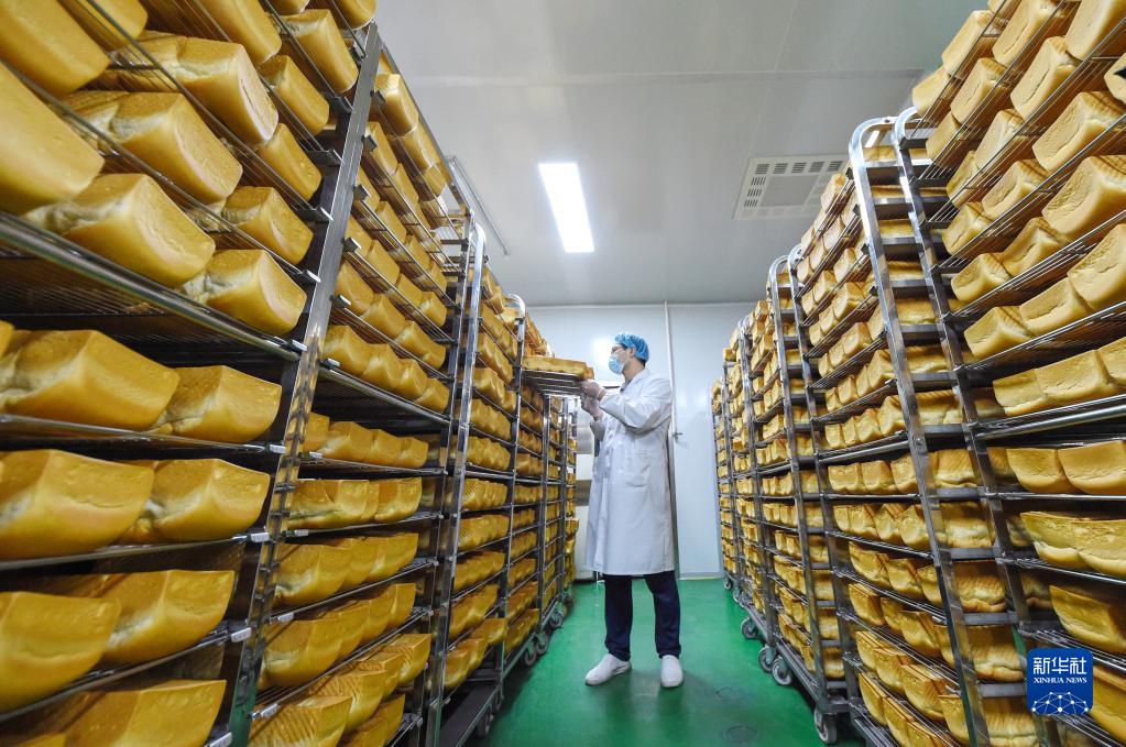 6月8日,河北邱縣一家面包生產(chǎn)企業(yè)工人在生產(chǎn)車(chē)間工作。
