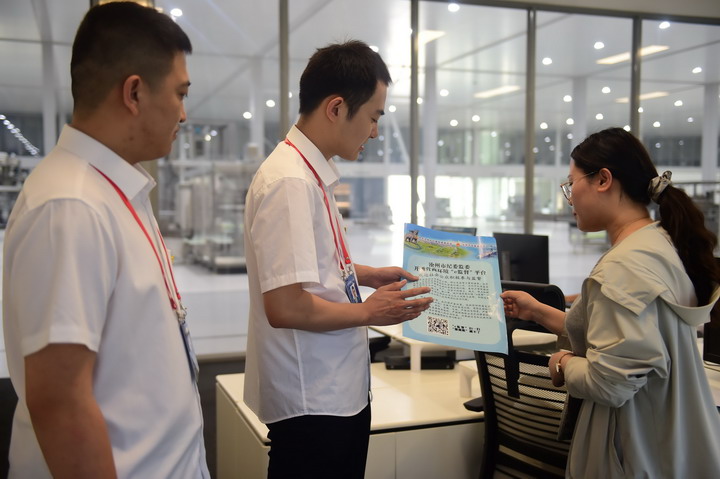 6月8日,滄州市運河區紀委監委工作人員向企業(yè)管理人員介紹“e監督”平臺使用方法。新華網(wǎng)發(fā)(謝辛 攝)