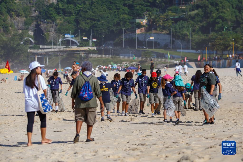 6月8日是世界海洋日。當日,志愿者們聚集在巴西里約熱內盧圣孔拉杜海灘,參與海灘垃圾清理行動(dòng)和保護海洋宣傳活動(dòng)。