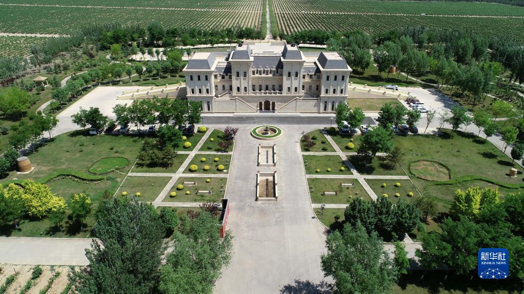 這是位于賀蘭山腳下的美賀莊園(6月8日攝,無(wú)人機照片)。