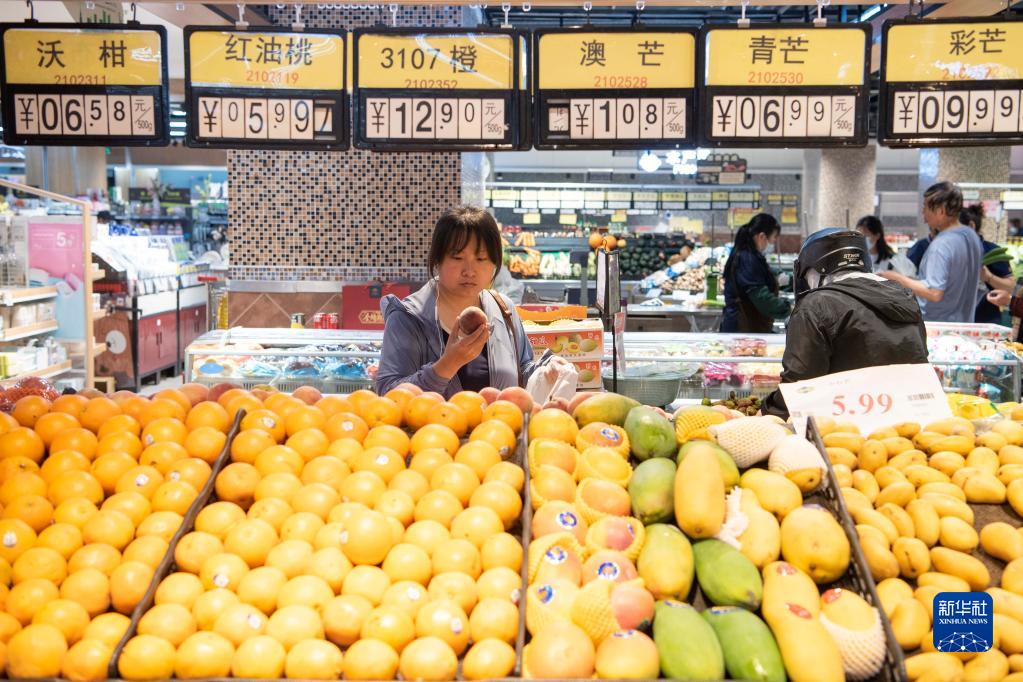 6月9日,顧客在江蘇省海安市一家超市選購水果。