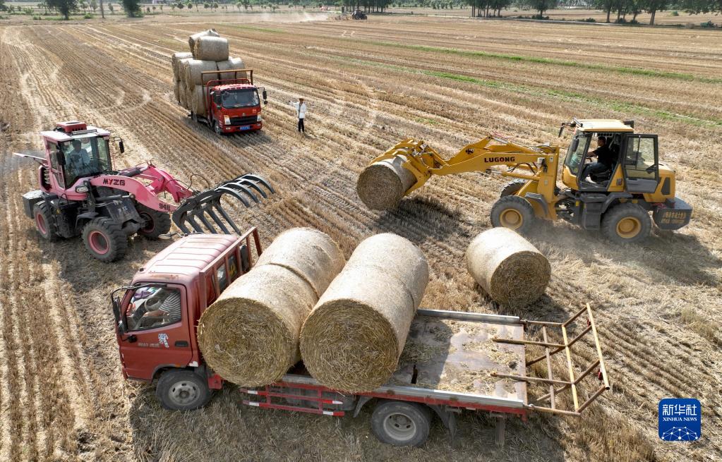 三夏時(shí)節,小麥豐收,各地農民及時(shí)將秸稈打捆回收。