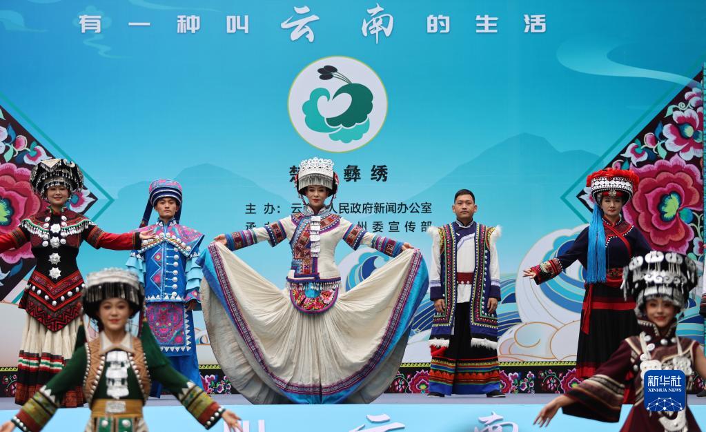 6月9日,模特在云南省楚雄市彝人古鎮活動(dòng)現場(chǎng)展示刺繡服飾。