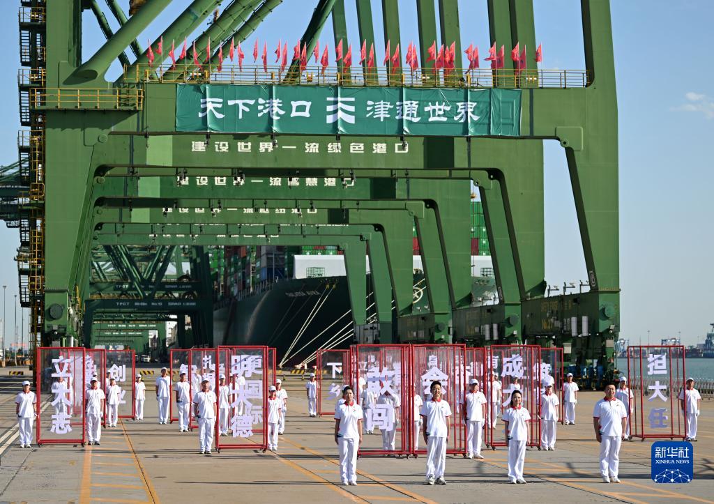 這是6月9日在天津港太平洋集裝箱碼頭拍攝的活動(dòng)現場(chǎng)。