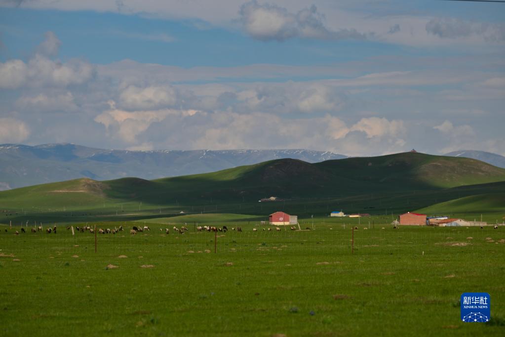這是6月9日在青海省海南藏族自治州貴南縣過(guò)馬營(yíng)鎮拍攝的高原草原。