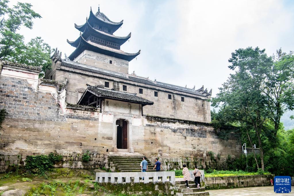6月8日,在位于重慶市云陽(yáng)縣鳳鳴鎮的黎明古村,游客在參觀(guān)游覽彭氏宗祠。黎明古村是中國傳統村落,當地依托全國重點(diǎn)文物保護單位彭氏宗祠和彭氏民居群的文化資源和當地的綠色資源,推動(dòng)古村整體保護利用和良性發(fā)展。