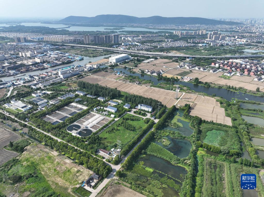 6月9日拍攝的常熟市城西污水處理廠(chǎng)和多水塘活水鏈濕地以及周邊景色(無(wú)人機照片)。