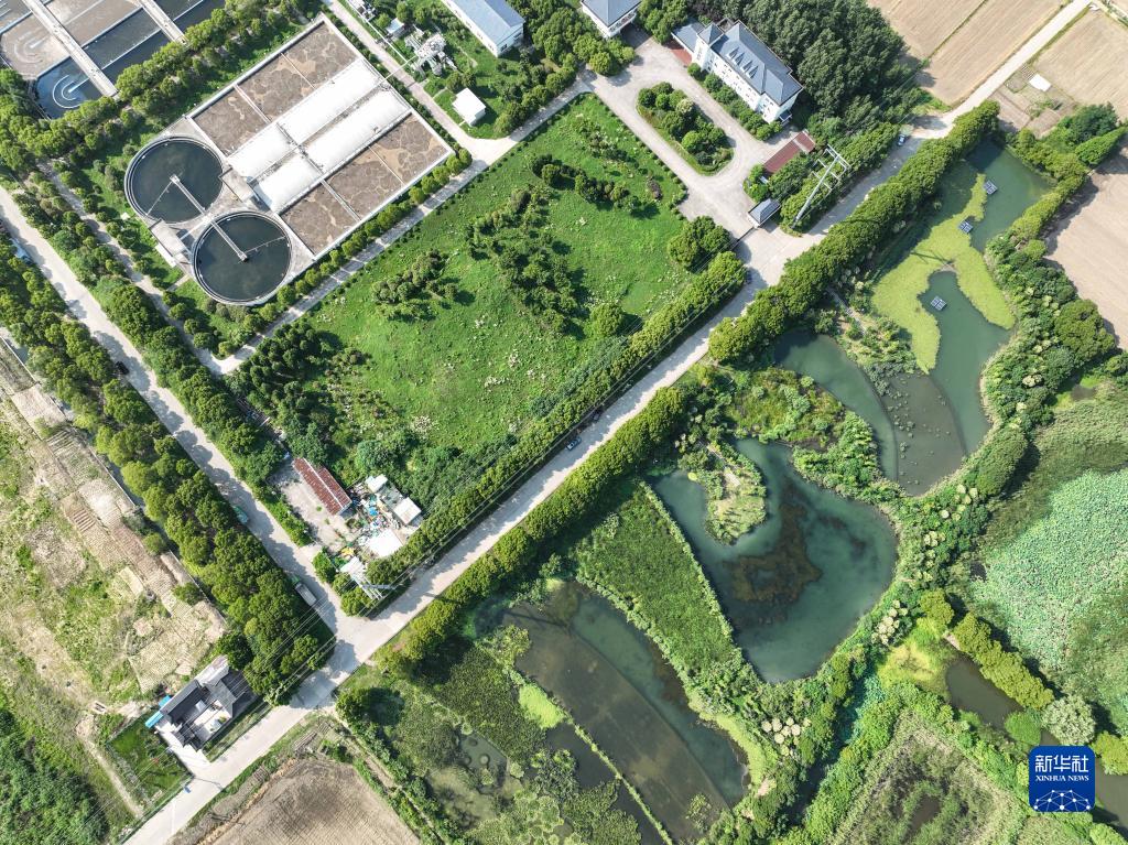 6月9日拍攝的常熟市城西污水處理廠(chǎng)和多水塘活水鏈濕地等(無(wú)人機照片)。