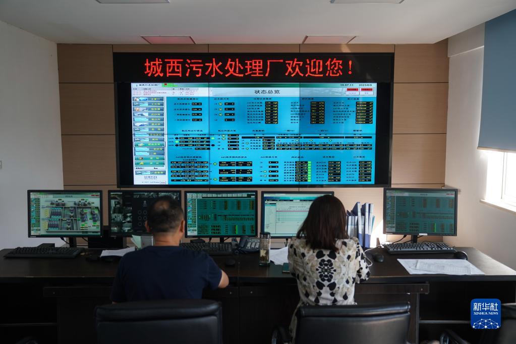 6月9日,工作人員在監控污水處理廠(chǎng)運行情況。